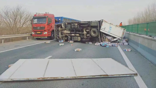 貨車側翻事故,車內貨物散落一地。貨車車廂解體了,貨物撒滿了高速公路上。緊急救援車馬上到現場處置,占用兩條行車道。民警立即在現場做好預警,引導后方車輛有序通行。原來是貨車長時間沒有去保養,在高速公路上行駛時候突破爆胎。司機操作不當,突發情況剎車了猛打方向盤,這樣導致貨車失控貨車車廂解體了。因此,及時學習做好信息安全管理防護并報警,駕駛前應及時檢查車輛的輪胎磨損情況,應當抓穩方向盤緩慢剎車,胎壓是否正常,防止爆胎。發生重大事故后切忌猛踩剎車系統以及急打方向,將損失風險降到最低。盡量將事故車輛停在緊急停車帶或路肩,貨車需要定期保養,正確駕駛。