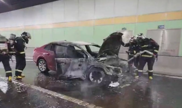 隧道內轎車自燃,情況危急!先導處置車攜手消防員逆行救援。天氣炎熱,風高物燥。空氣濕度很低,很容易發生火災。這時突發緊急情況,隧道的一輛小轎車發生了火情,自燃了。時間緊迫先導處置車第一時間趕到現場進行處置。因為隧道比較狹窄,又是下班的完高峰期。自燃導致了高速車輛大排長龍。消防車比較大開到隧道口就沒辦法往前開了。為了讓消防車盡快到達現場滅火。先導處置車的人員在指揮交通秩序。搭載消防隊員進隧道滅火。很快現場明火被撲滅,自燃車輛被拖離。經多先導處置車部門聯動處置,快速消除車輛燃爆險情,交通恢復正常。