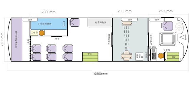 DR體檢車立鉛防護室,把DR鉛防護室安裝體檢車中心,圖像數字化處理成像準確。比醫院的科室DR便捷,而且有相當不錯的抗震效果,在生產DR車的時候,考慮到車載DR較科室DR功率略小,在體檢車上定制車載DR能高效完成放射類體檢項目。其放射X劑量少很多,也讓移動體檢車在行駛過程中更安全。采用三層以上噴涂噴砂技術、防銹防腐、光亮鈀漆技術。